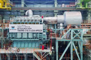 図3:アンモニア焚きデュアルフューエル・エンジン7S60ME-C10.5-LGIA-HPSCR外観(出典:https://www.mes.co.jp/en/action/ammonia-engine-project/ )